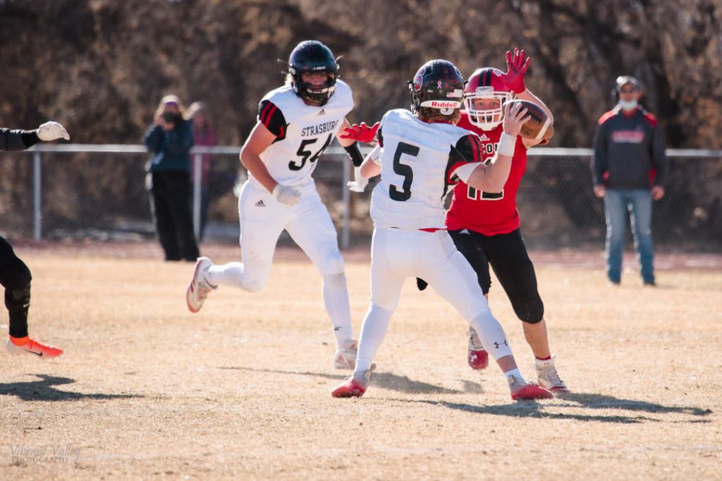 Collin Russell Sr. Strasburg High School; 242 yards passing, 182 yards rushing, and 5 Total TDs in the Playoffs.