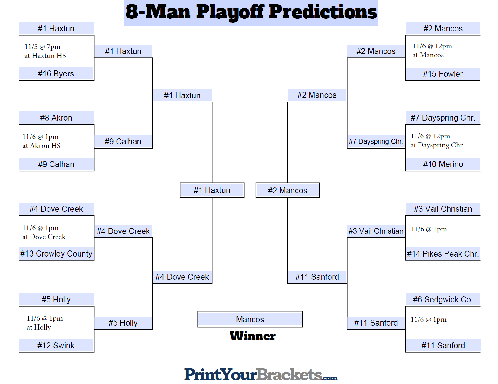 8-Man Entire Bracket Filled Out