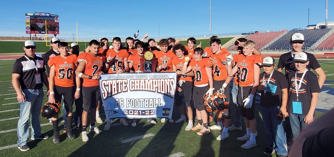 Congratulations to your 6-Man Football State Champions the Cheyenne Wells Tigers. Cheyenne Wells was able to cap off the undefeated season and win their first State Championship in School history with a 62 to 21 win over Stratton. Cheyenne Wells had an explosive 1st quarter to jump out to a quick lead. Cheyenne Wells offensively was led by senior RB Cade Mitchek and defensively led by a very good group of seniors. Cheyenne Wells started the season with a goal of winning a State Title and were to accomplish that goal and win a state title. Once again Congratulations to Cheyenne Wells on winning the 6-Man State Title.