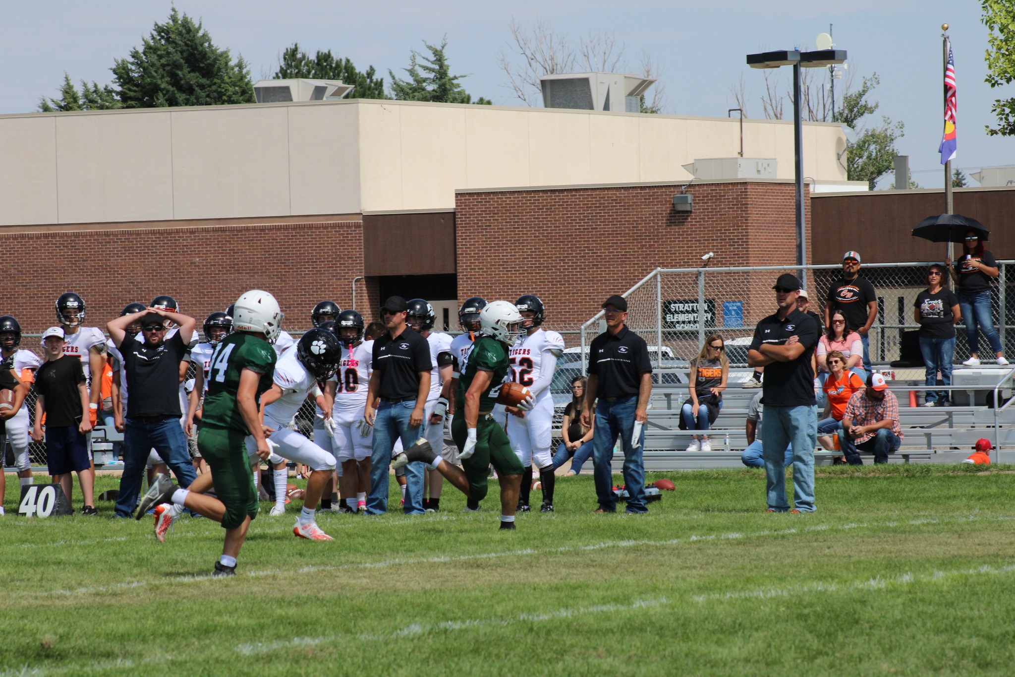 Perry Chadwick tossed a TD to Carson Noe and also returned a kick 79 yards to keep the Tigers within striking distance at Stratton last Saturday. However, the senior went out prior to the end of the first half with an injury and the Tigers would not score again, falling 65-16. He threw a TD in last year’s 45-27 loss to Cheylin, but the Cougars turned the game around with four interceptions. Logan McCarty, one of the top players in the state of Kansas, had one of those four picks, while also running for 147 yards and four scores, and throwing for 119 yards and two TD.