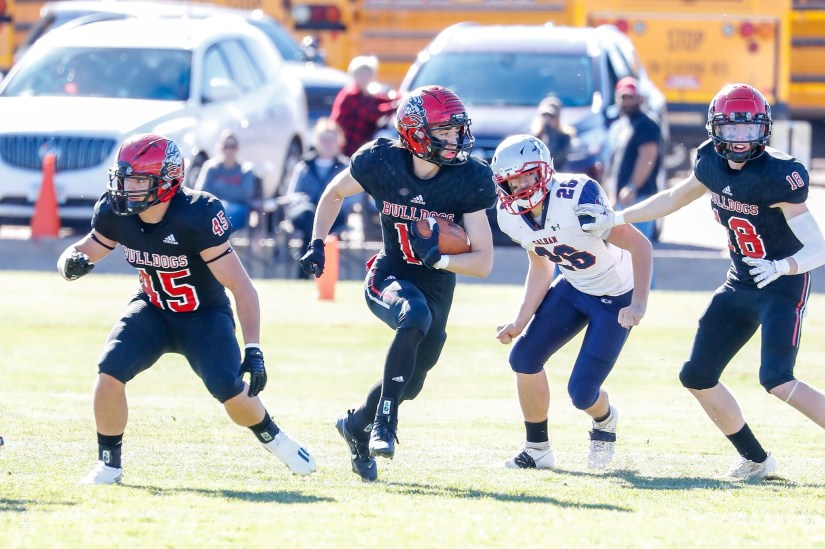 Haxtun’s defense has fueled its run through the playoffs, with the Fightin’ Bulldogs allowing a total of 20 points in their three games. Last week, they recorded four interceptions in a 30-12 semifinal victory over #2 Simla.