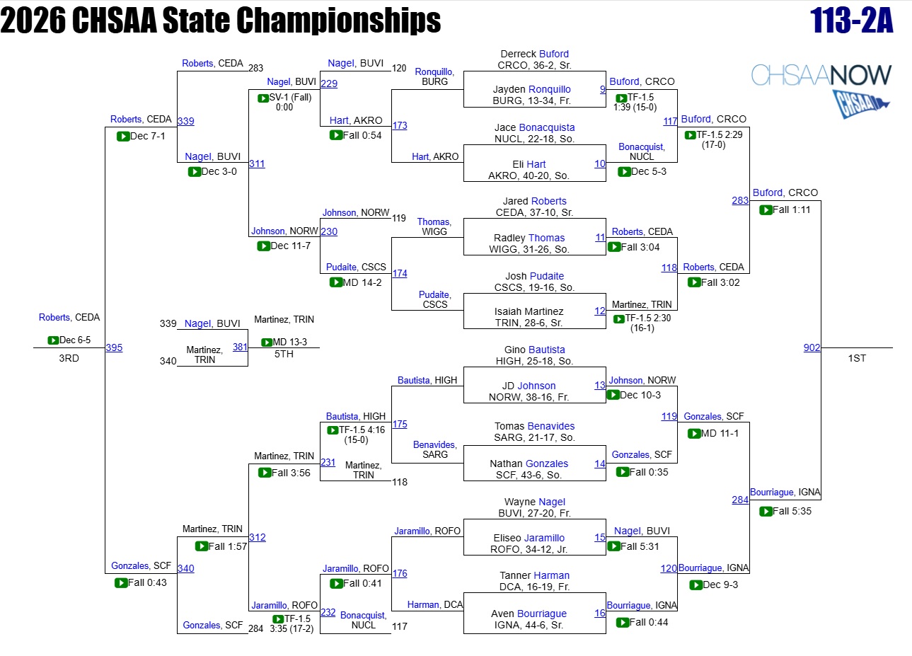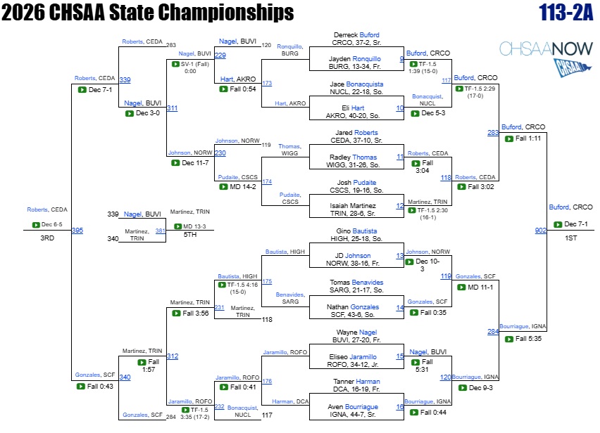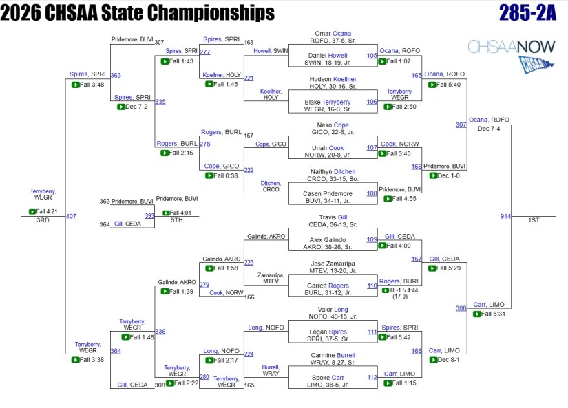 We will try and update brackets but it’s not an easy process. To see up to date brackets and live scores click on the FloWrestling link below: